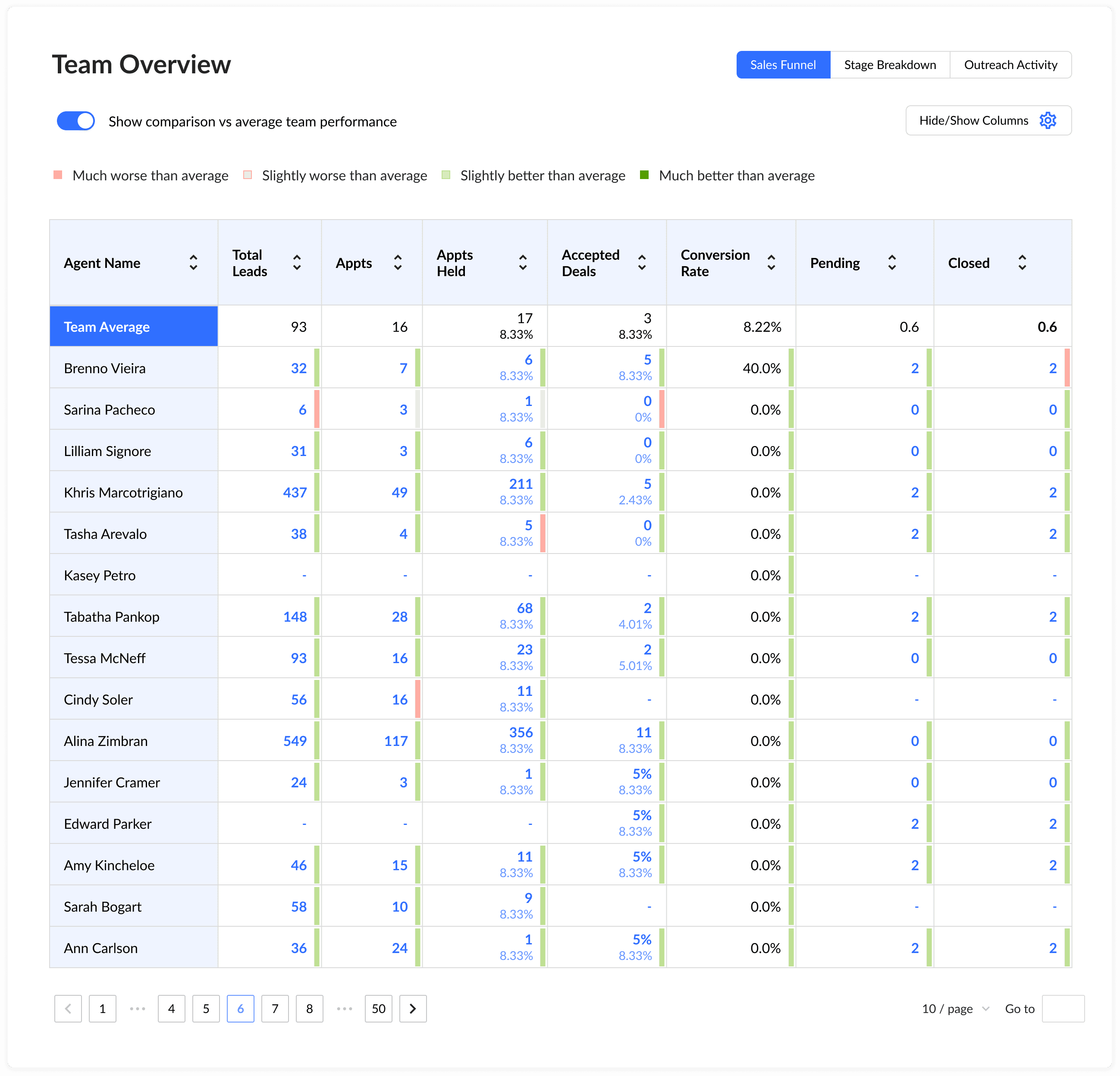 Top-line numbers (closed deals, revenue) often create a distorted view of business health, masking underperforming agents or misrepresenting team effort.Real-time visibility is critical