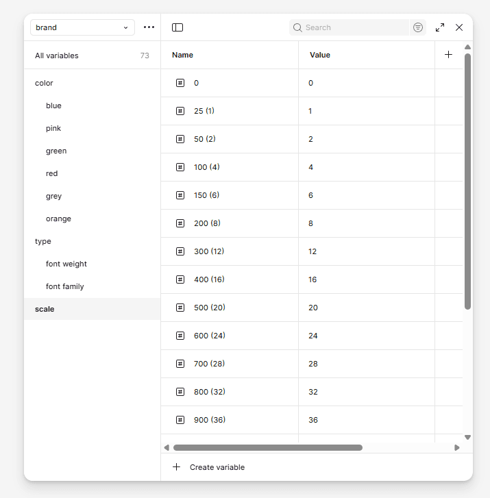 The primary approach in developing the design system was to structure it around Variables. Unlike the traditional method of relying on static style presets, Variables provide a more advanced and flexible way to define and store values such as colors, typography, and spacing. This structured approach allows for improved consistency and reduces the likelihood of errors across the system.